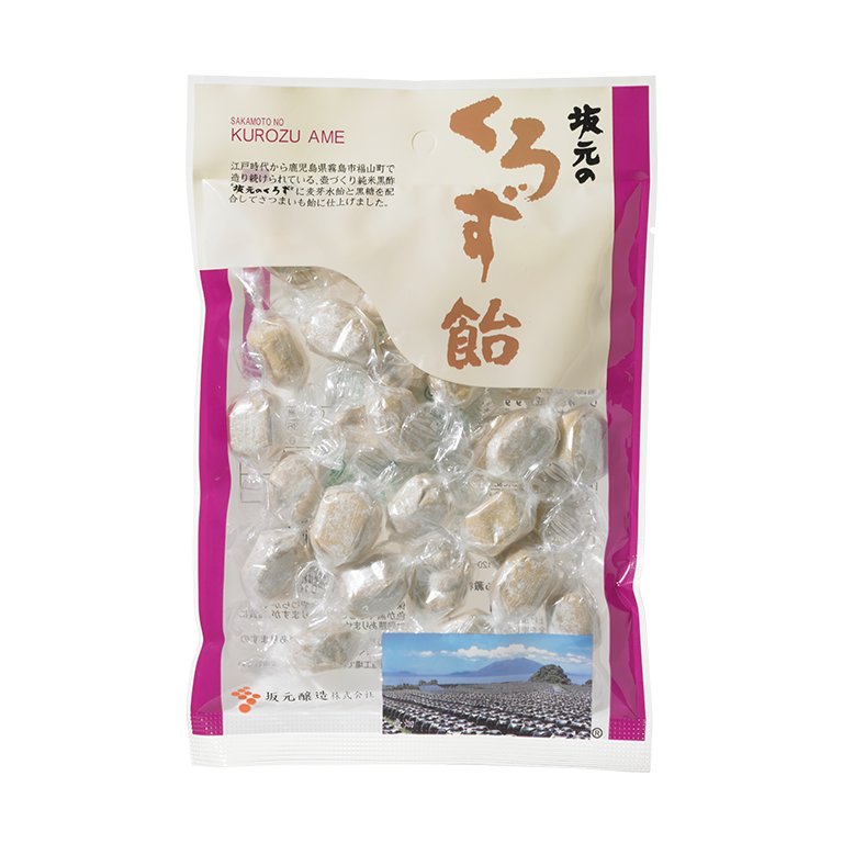 昔ながらの製法で作ったさつまいもが原料の麦芽水飴を主原料に、黒糖、壺づくり純米黒酢「坂元のくろず」などを加えて作ったいも飴です。くろずの酸味といも飴のほのかな甘みが特徴です。