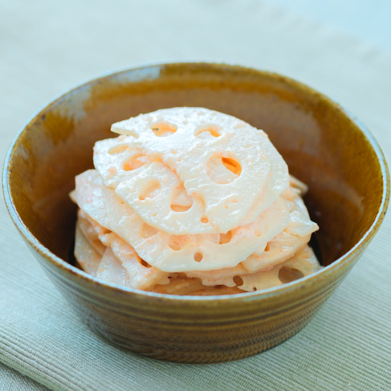 れんこんのシャキシャキ食感がアクセントのサラダです。