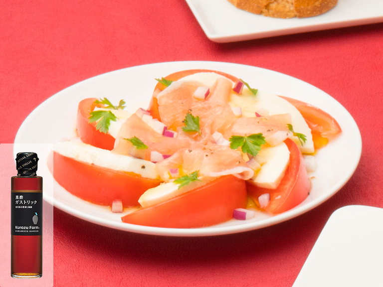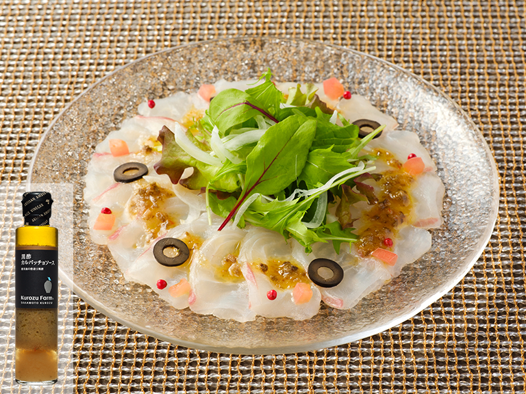 黒酢カルパッチョソースには玉ねぎ、オリーブなど数種類の香味具材がブレンドされているので、お刺身にサッとかけるだけで簡単におしゃれな一品が完成します。